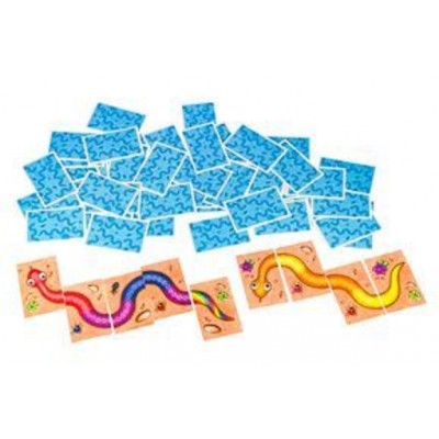 ¿Quién puede ayudar a poner los colores en orden? Rojo con rojo, azul con azul, amarillo con amarillo… ¡Es fácil! ¿verdad? Completad las serpientes con cabeza, cuerpo y cola y llevároslas a vuestro montón. ¡El que consiga más cartas al final de la partida es el ganador!