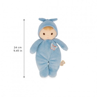 ¡Baby Lin está lista para la aventura de su vida! Se trata de una encantadora y suave muñeca de tela, ideal como peluche o como primera muñeca del bebé. Esta adorable muñeca rubia de 24 cm destaca por su cuerpo azul y sus bonitos ojos marrones. Confeccionada en microterciopelo extrasuave, pana y acolchada con poliéster reciclado, esta muñeca de tela ofrece una textura suave que invita a abrazos más tiernos. Inspirado en la flor de lino, sinónimo de elegancia, es el regalo ideal para expresar pureza, minimalismo y sostenibilidad. El lino es conocido por su resistencia y longevidad, como el vínculo fuerte y duradero que une al bebé y a los padres. El torso de esta pequeña muñeca está decorado con una delicada mariposa, que recuerda la ligereza y la gracia de las flores: un detalle verdaderamente poético. La etiqueta con forma de mariposa es una invitación a desarrollar la destreza y la curiosidad sensorial del bebé. Cada abrazo con Baby Lin estimula suavemente los sentidos y fomenta el desarrollo táctil de los niños pequeños. Su adorable sombrero atado es un elemento más a explorar.