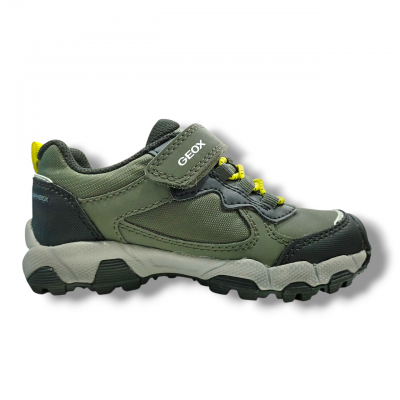 Deportiva junior de estilo outdoor que garantiza la máxima impermeabilidad y transpiración incluso en caso de lluvia intensa. Este modelo, realizado con material con efecto piel y nailon, presenta una estructura low-cut que combina protección, confort y libertad de movimiento en cualquier condición meteorológica.