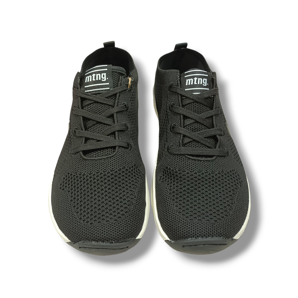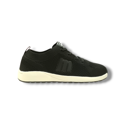 Zapatillas barefoot de color negro de la marca Mustang, modelo Free Apolo de estilo deportivo. Este diseño destaca por su upper de malla y su suela blanca en contraste. Incluye tiradores traseros para facilitar el calce y un logo lateral en relieve que aporta un toque distintivo.